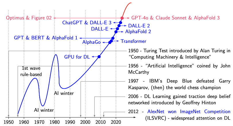 The pace of innovation continued to accelerate. Shortly after I joined Amazon in July, 2017, a bunch of Googlers published their landmark paper “Attention is All You Need,” introducing the transformative Transformer architecture. The paper’s ambitious title proved prophetic - Transformers began outperforming previous sequence models almost immediately, long before ChatGPT would bring this technology into the mainstream in 2022. Then the era of LLMs and genAI began.1 Ever since, there have been unprecedentedly fast development and progress in these areas marked by the names of new versions of products or new products such as AlphaFold 2, DALL-E, DALL-E 2, DALL-E 3, Mistral AI, Optimus, GPT-4o, Figure AI, Claude Sonnet, and AlphaFold 3. Literrally, you would see new things coming beating the performance of the predecessors every week (without any bit of exeggerations). And just months ago, I started seeing “AI agents” as new buzzwords everywhere, marking yet another paradigm shift in how we think about artificial intelligence.