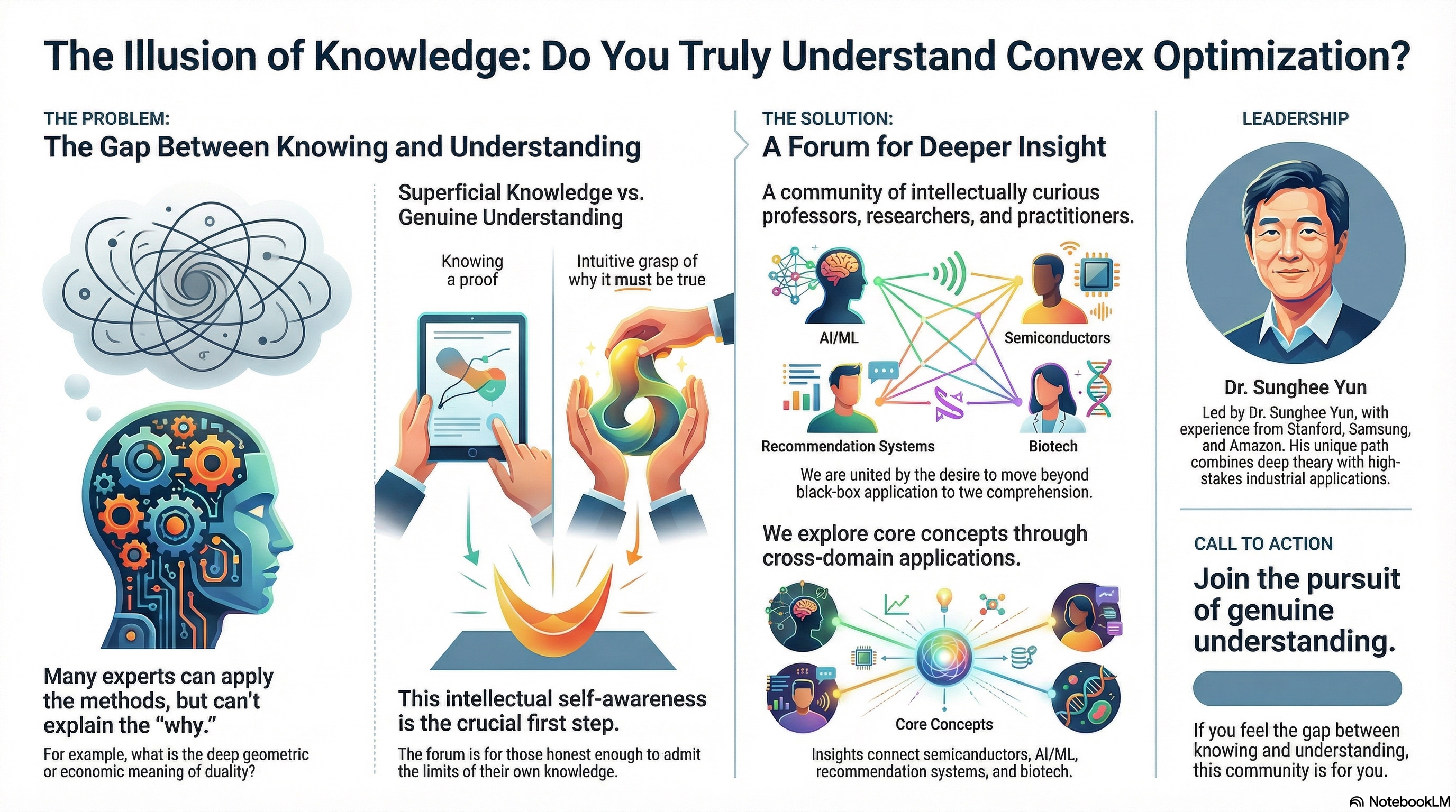 This very quest—the drive to move from mechanical knowledge to genuine, multi-faceted insight—is what inspired the creation of communities like Convex Optimization Forum I created. It is a journey that changes not only how you solve problems, but how you think about them in the first place.