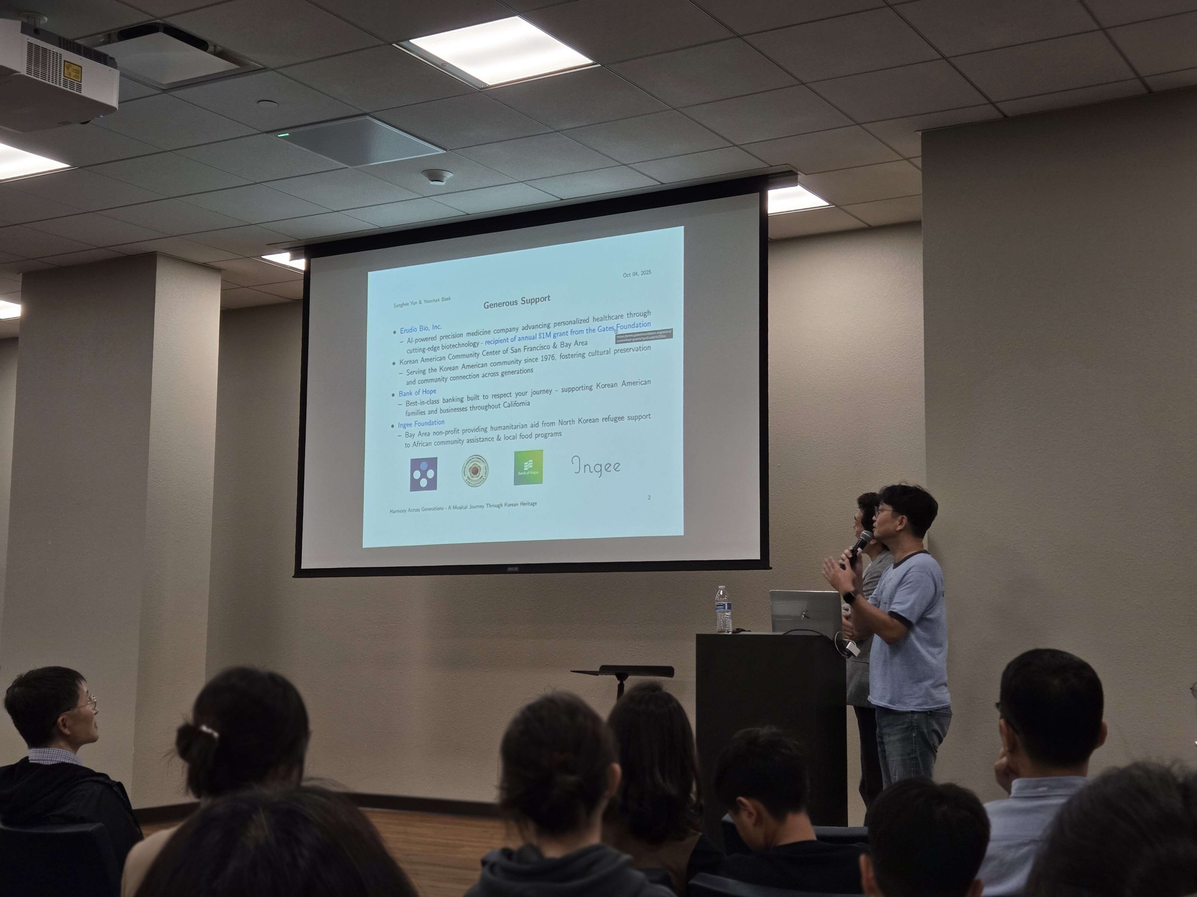 The sponsors who made this event possible—Erudio Bio (where I’m leading AI technology development), the Korean American Community Foundation, Bank of Hope, Ingee Foundation—represent this same integration. They understand that advancing biotechnology or financial services doesn’t preclude (indeed, it may require) engagement with arts, culture, and the deeper questions of human flourishing.
